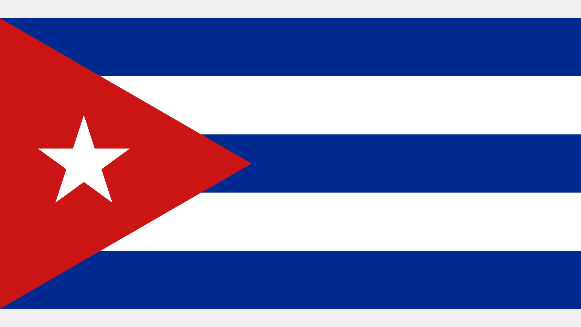 Description: Flag of Cuba – Five horizontal stripes of blue and white with a red triangle at the hoist containing a white five-pointed star